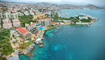 Featuring currency exchange and a lift, the 2-star Hotel Stella Kusadasi sits only a 5-minute walk from Guvercinada Island. You can have some rest at a swimming pool or enjoy swimming in Aegean Sea, while this hotel boasts a prime location 250 metres away.